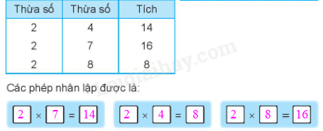 Dựa vào bảng nhân 2 ta lập được các phép nhân từ các số đã cho.