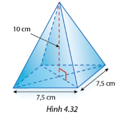 \(V = \frac{1}{3}.S.h = \frac{1}{3}.7,5.7,5.10 = 187,5c{m^3}\)