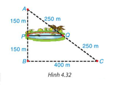 Trong Hình 4.32 có AP = BP = 150 m; AQ = CQ = 250 m.