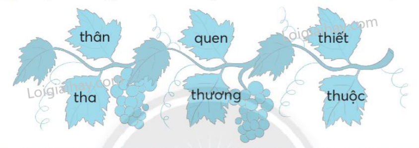 Em đọc kĩ các tiếng trong những chiếc lá và ghép lại với nhau để thành những từ ngữ chỉ tình cảm với nơi thân quen.
