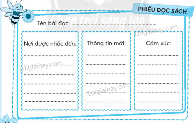 Em lựa chọn 1 bài đọc về nơi thân quen, gắn bó mà em đã đọc và viết thông tin vào phiếu đọc sách.