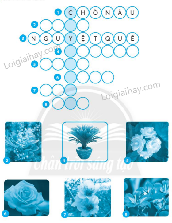 Em quan sát các ô chữ và các tranh gợi ý ở phía dưới để giải ô chữ.