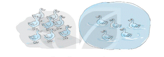 - Đếm số con vịt trên bờ và dưới ao.