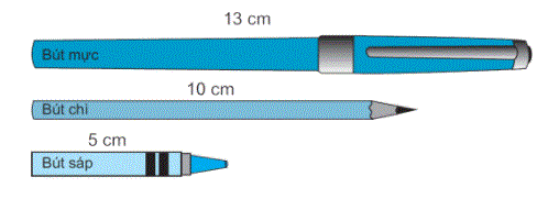 a) Bút mực dài 13 cm; bút chì dài 10 cm; bút sáp dài 5 cm.