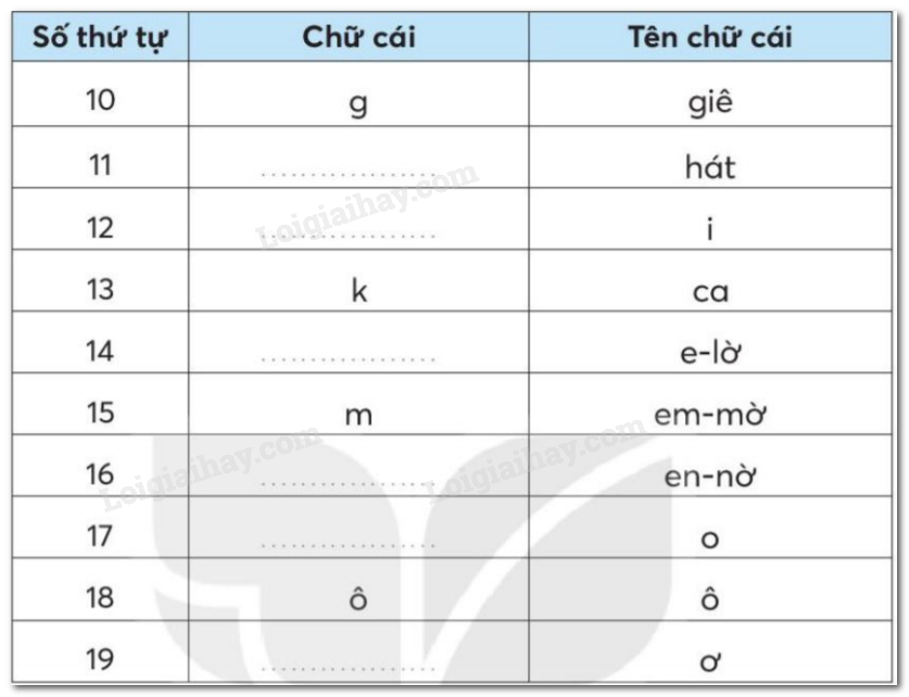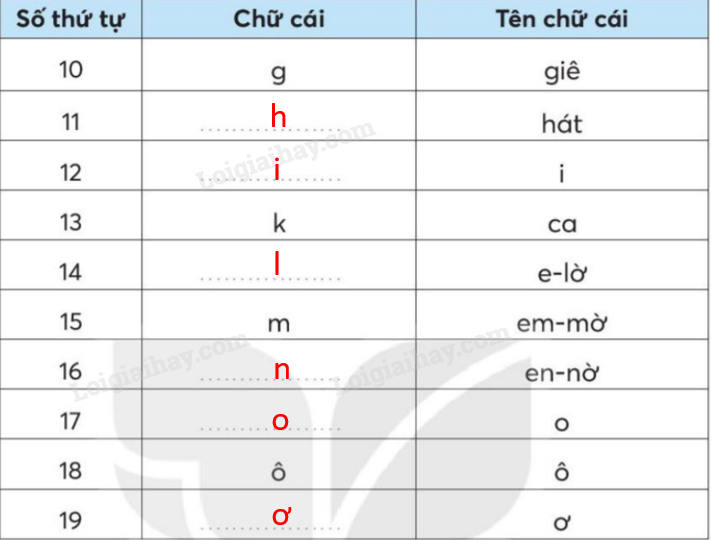 Điền những chữ cái còn thiếu vào chỗ trống.