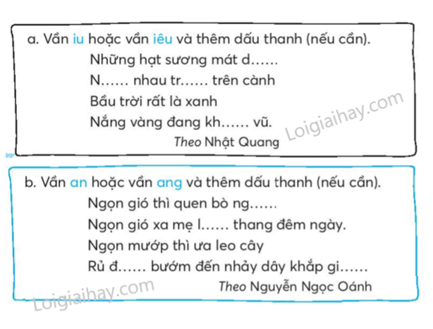 Em đọc kĩ các câu thơ và điền vần phù hợp vào chỗ trống.