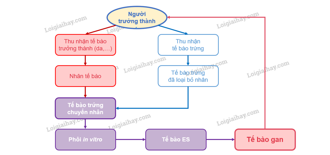 - Phương án 2: Lấy tế bào soma của bệnh nhân đem nuôi cấy, cho chuyển biệt hóa thành các tế bào gan và tạo nên cơ quan mới. Sau đó, tiến hành cấy ghép gan cho bệnh nhân.