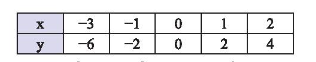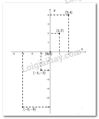 Đồ thị hàm số là tập hợp các điểm có tọa độ \(\left( { - 3; - 6} \right);\left( { - 1; - 2} \right);\left( {0;0} \right);\left( {1;2} \right);\left( {2;4} \right)\) được vẽ trên mặt phẳng tọa độ như hình dưới đây
