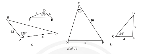 Xét xem cặp tam giác nào trong Hình 16a,16b đồng dạng?