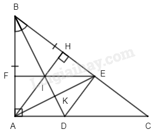 Xét \(\Delta ABE\) có hai đường cao \(BK\) và \(AH\) cắt nhau tại \(I\) nên \(I\) là trực tâm của \(\Delta ABE\)