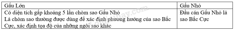 1. Mô tả sự khác biệt giữa hai chòm sao Gấu Lớn và Gấu Nhỏ