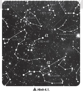 Tên các chòm sao trong Hình 4.3 là: Tam giác, Song tử, Người đánh xe, Đại Bàng, Mũi Tên, Thiên Nga, Con rắn, Đàn Lia, Vũ Tiên, Người Chăn Bò, Trinh Nữ, Tóc Tiên, Người Chăn Rắn, Sư Tử, Ngựa Một Sừng, Tiên Nữ, Ngựa Nhỏ, Thợ Săn, Con Cua, Con Rồng, Kim Ngưu, Con Cừu, Trường Xà, Mèo Rừng, Chó Săn, Tiên Vương, Anh Tiên, Thằn Lằn, Cá Heo, Song Ngư, Ngựa Có Cánh, Hươu Cao Cổ.
