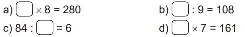 d) ....... x 7 = 161