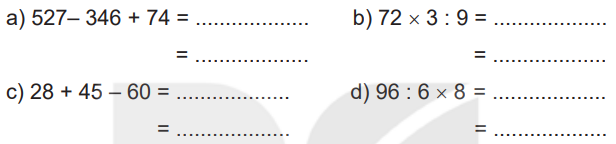 Nếu trong biểu thức chỉ có các phép tính cộng, trừ hoặc chỉ có phép tính nhân, chia ta thực hiện các phép tính theo thứ tự từ trái sang phải.