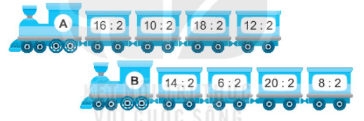 Dựa vào bảng chia 2 để tính nhẩm các phép tính trên đoàn tàu.