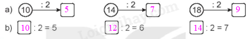 Tính nhẩm kết quả dựa vào bảng chia 2.