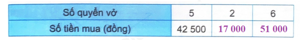 a) Giá tiền của 1 quyển vở là: 42 500 : 5 = 8 500 (đồng)