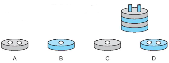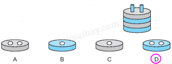 Quan sát hình ta thấy, các khối dạng hình trụ được xếp xem kẽ: màu xanh, màu xám, màu xanh, ... Do đó khối trụ trên cùng có màu xanh.