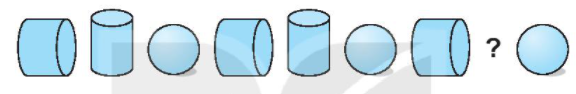 Ta thấy các hình xếp theo thứ tự: khối trụ nằm ngang, trụ đứng, khối cầu, trụ ngang, trụ đứng, khối cầu, ....