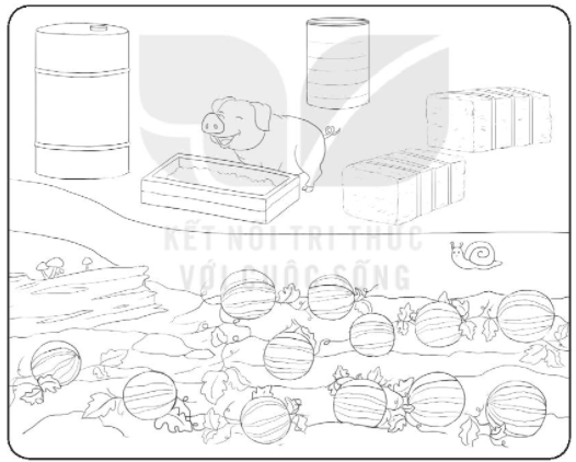 Quan sát hình vẽ, xác định các hình có dạng khối trụ, khối cầu, khối hộp chữ nhật và tô màu theo yêu cầu bài toán.