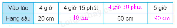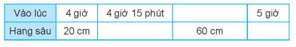 b) Từ 4 giờ đến 5 giờ cái hang sâu thêm số cm = Chiều sâu của hang lúc 5 giờ - chiều sâu của hang lúc 4 giờ.