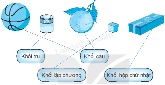 Quan sát tranh rồi nối mỗi vật với dạng hình khối của nó cho thích hợp.