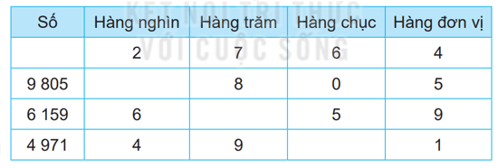 a) Xác định các chữ số hàng nghìn, trăm, chục, đơn vị của mỗi số.