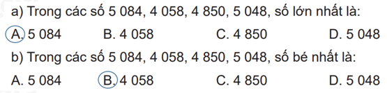 Áp dụng cách so sánh số có bốn chữ số để tìm ra số lớn nhất và số bé nhất.