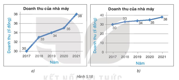 a) Doanh thu mỗi năm của nhà máy trong hai biểu đồ a) và b) đều như nhau.