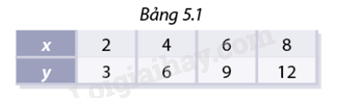 Bảng 5.1 cho biết quãng đường y(m) mà một người đi bộ trong công viên đi được sau khoảng thời gian x (giây).