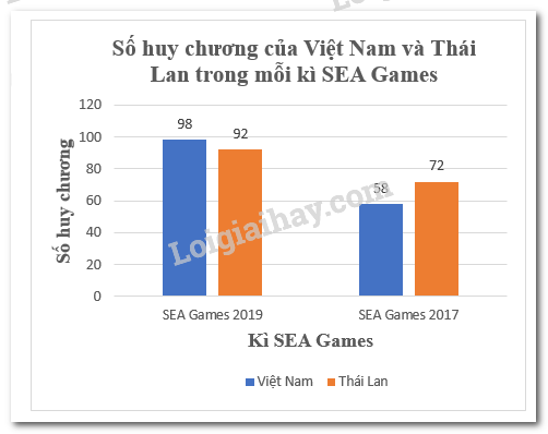 b) Vẽ biểu đồ so sánh số huy chương của Việt Nam và Thái Lan trong mỗi kì SEA Games.