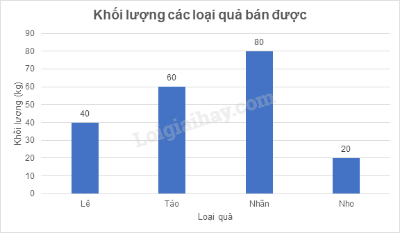 Từ biểu đồ biết được tỉ lệ mỗi loại quả bán được từ đó tính được số quả mà mỗi loại quả bán được và lập được bảng thống kê