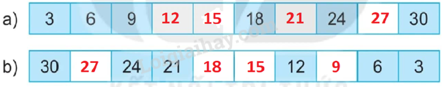 Đếm thêm 3 đơn vị (hoặc đếm lùi 3 đơn vị) rồi viết số còn thiếu vào ô trống.
