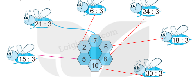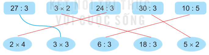 Tính nhẩm dựa vào bảng chia 3 rồi nối với số tương ứng.