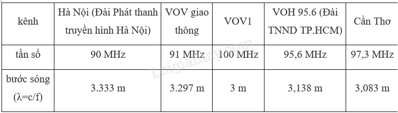 Tìm hiểu tần số của một số kênh truyền thanh ở Việt Nam và tính giá trị bước sóng của sóng điện từ được sử dụng.