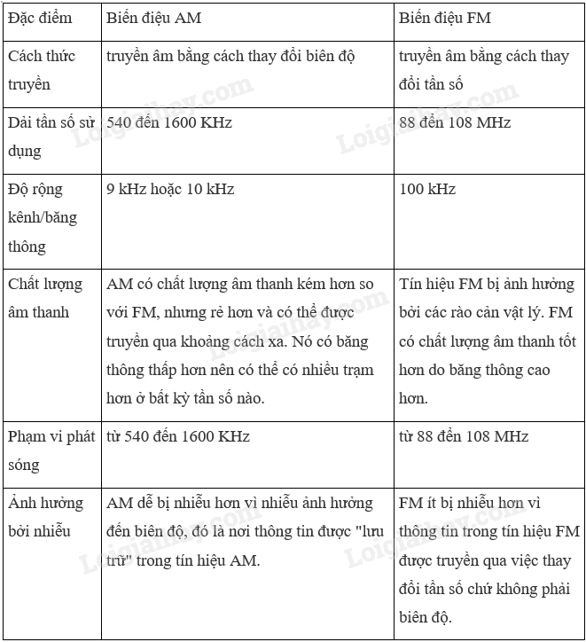 2. Nêu ưu điểm và nhược điểm của các phương pháp biến điệu AM, FM và lập bảng so sánh.