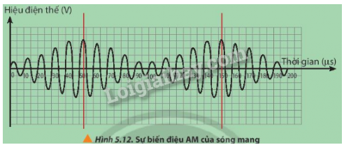 Hình 5.12 cho thấy một sóng mang được biến điệu AM bởi một sóng âm (pure tone).