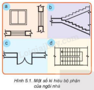Em có biết các kí hiệu trên Hình 5.1 được dùng để kí hiệu các bộ phận nào của ngôi nhà không?