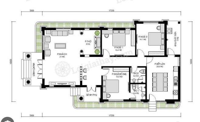 Phòng khách, phòng bếp: 6 200 - 4 800