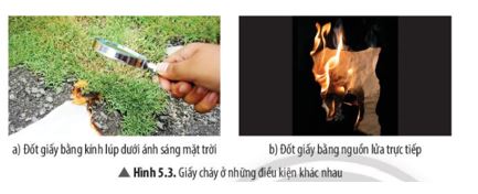 Khi đốt giấy bằng kính lúp dưới ánh sáng mặt trời, kính lúp sẽ giống như một thấu kính hội tụ, chúng sẽ hội tụ ánh sáng mặt trời tập trung ở một điểm, làm nhiệt độ tăng lên cao, nên mẩu giấy có thể cháy. Như vậy cần mất một khoảng thời gian để ánh sáng mặt trời hội tụ và tạo nên nguồn nhiệt.