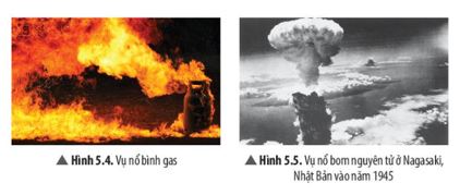 Từ việc quan sát Hình 5.4 và 5.5, hãy mô tả hiện tượng và so sánh mức độ của mỗi vụ nổ.