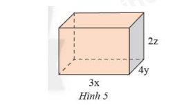 Viết biểu thức biểu thị thể tích (V) và diện tích xung quanh (S) của hình hộp chữ nhật trong Hình (5).