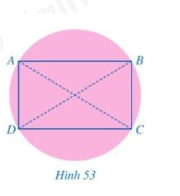 Bước 2: Sau đó lại gấp tương tự mảnh giấy đó nhưng theo đường kính mới và đánh dấu hai đầu mút của đường kính mới là hai điểm B, D. Khi đó tứ giác ABCD là hình chữ nhật (hình 53)
