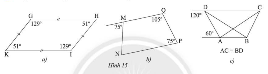 Tứ giác nào trong Hình 15 là hình thang cân?