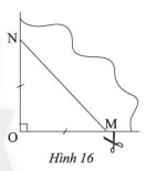 Lấy một tờ giấy, gấp làm tư để có một góc vuông như triong Hình 16, dùng kéo cắt theo đường \(MN\) sao cho \(OM = ON\). Mở phần giấy cắt được ra ta được một tứ giác. Tứ giác đó là hình gì. Giải thích kết luận của em.