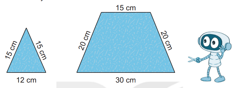 Để làm đồ chơi, Rô-bốt cắt các miếng bìa có kích thước như hình dưới đây: