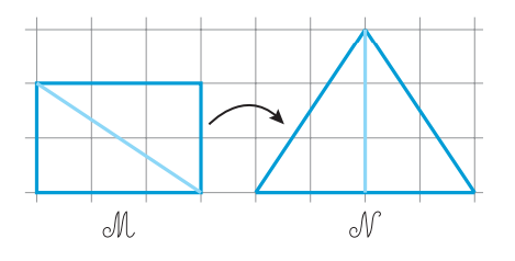 Có thể cắt hình M thành 2 hình tam giác và ghép lại để được hình N.