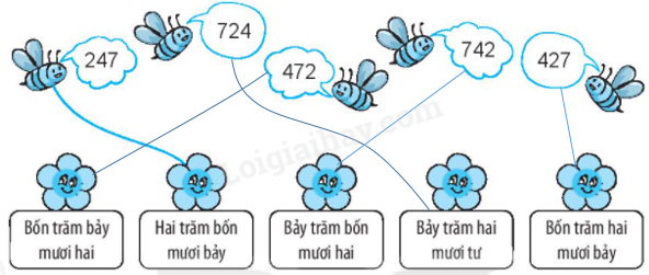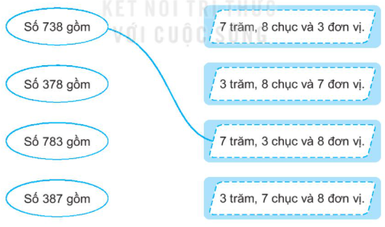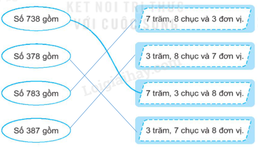 Nối các số với các số trăm, số chục và số đơn vị tương ứng.