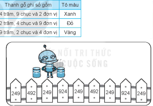 Hàng rào số 924 gồm 9 trăm, 2 chục và 4 đơn vị: tô màu vàng.