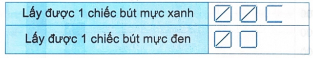 Dựa vào bảng kiểm đếm, ta thấy số lần Việt lấy được bút mực xanh là …… lần và số lần Việt lấy được bút mực đen là ….. lần. Sự xuất hiện nhiều lần hơn là …………